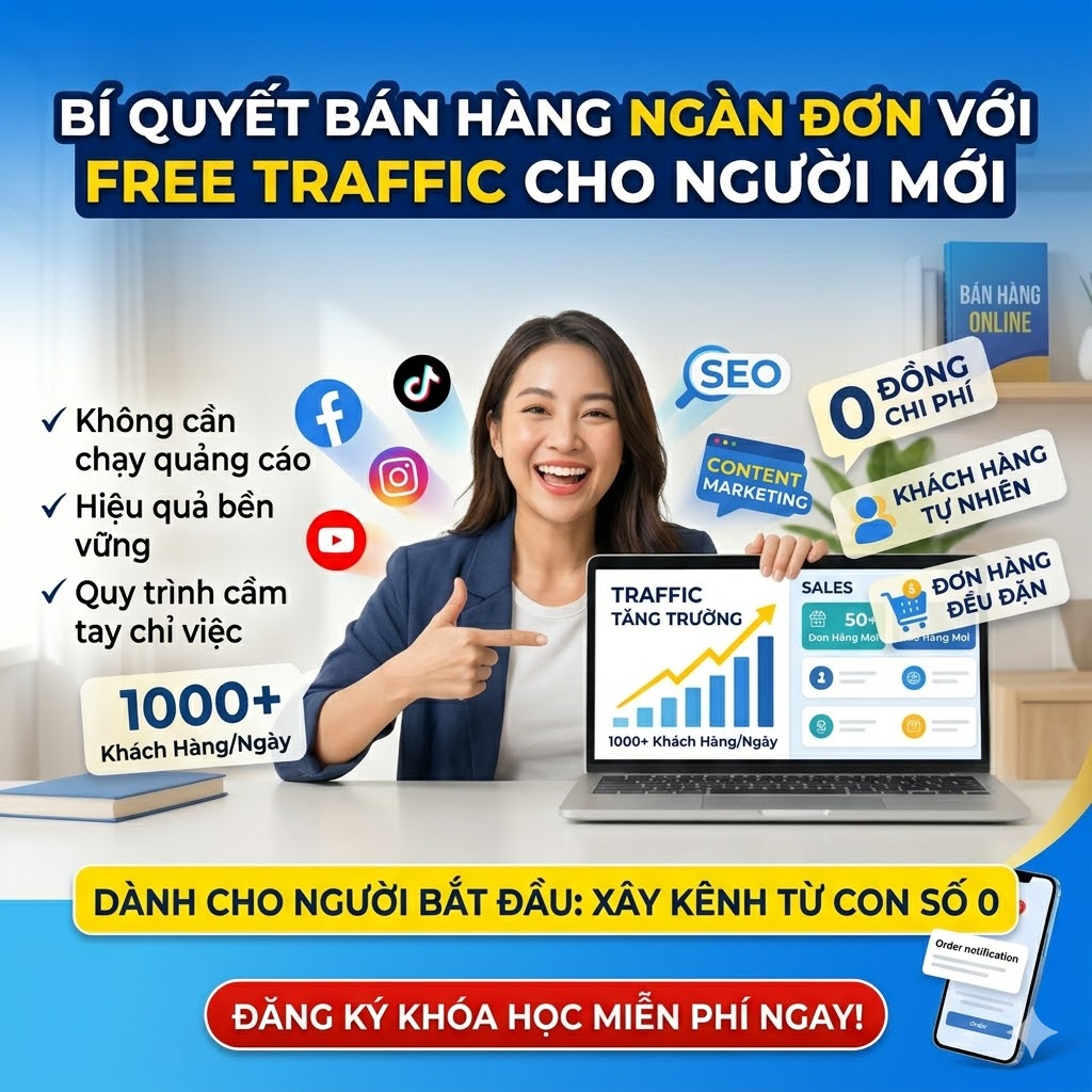 Khóa Học Free Traffic Cho Người Mới – Bán Hàng Không Cần Quảng Cáo Vẫn Ra Đơn Đều Đặn